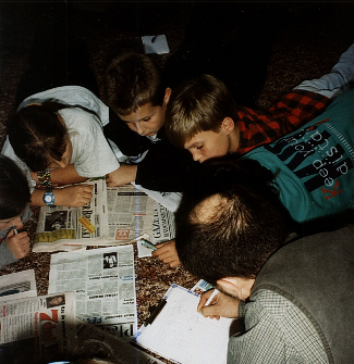 Kto zainicjował tworzenie gazetki? pierwsza grupa zapaleńców "montowała" materiał w swoich domach, na swoich komputerach. Gdy w szkole pojawiły sie maszyny z nowym systemem (przedtem był zwykły DOS) czyli Windows 95 można było część pracy przenieść do pracowni komputerrowej. Kolejnym krokiem było unowocześnienie sprzętu i przejście na Windows 98 a potem Windows XP. Pojawiały się programy pomagające w edycji grafiki, tekstu i łamaniu treści. Analogowe aparaty fotograficzne zastąpł cyfrowy Canon z wewn. pamięcią 3.1 MB. Każdego tygodnia liczna grupa redaktorów z chęcią przystępowała do nowych zadań. Opiekunowie: Krystyna Pacnik, Monika Agopsowicz, Włodzimierz Gierczycki, wkrótce także Małgorzata Wojciechewicz -społecznie organizowali zajęcia temu zaspołowi. Zapraszani goście - profesjonaliści dostarczali wiedzy i pomysłów. Gazeta ukazywała się w formie drukowanej i kosztowała 1 zł. Jej nakład 100-150 egzemplarzy