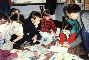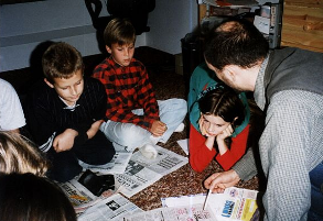 Kto zainicjował tworzenie gazetki? pierwsza grupa zapaleńców "montowała" materiał w swoich domach, na swoich komputerach. Gdy w szkole pojawiły sie maszyny z nowym systemem (przedtem był zwykły DOS) czyli Windows 95 można było część pracy przenieść do pracowni komputerrowej. Kolejnym krokiem było unowocześnienie sprzętu i przejście na Windows 98 a potem Windows XP. Pojawiały się programy pomagające w edycji grafiki, tekstu i łamaniu treści. Analogowe aparaty fotograficzne zastąpł cyfrowy Canon z wewn. pamięcią 3.1 MB. Każdego tygodnia liczna grupa redaktorów z chęcią przystępowała do nowych zadań. Opiekunowie: Krystyna Pacnik, Monika Agopsowicz, Włodzimierz Gierczycki, wkrótce także Małgorzata Wojciechewicz -społecznie organizowali zajęcia temu zaspołowi. Zapraszani goście - profesjonaliści dostarczali wiedzy i pomysłów. Gazeta ukazywała się w formie drukowanej i kosztowała 1 zł. Jej nakład 100-150 egzemplarzy